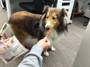 とてもおとなしく恥ずかしがり屋さんなので、新しい環境と人に慣れてもらえるよう事務所内で過ごしてもらっています。