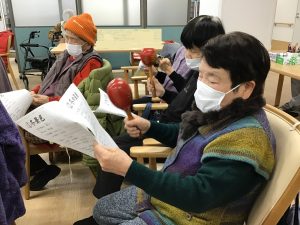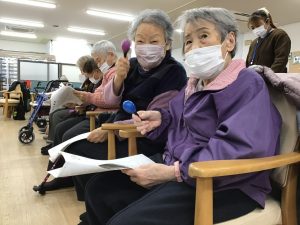 皆さん口ずさみながら手拍子を打ったり、リズムに合わせてマラカスや鈴を演奏したり、とても楽しいひと時を過ごされました(^^♪