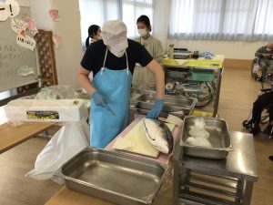 栄養科主催の「ブリの解体ショー」を開催しました!!