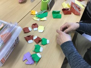 折り方の動画を見ながら真剣に取り組んでおられます。