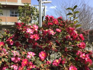 毎年この時期になると、中庭のサザンカが春の訪れを教えてくれます。